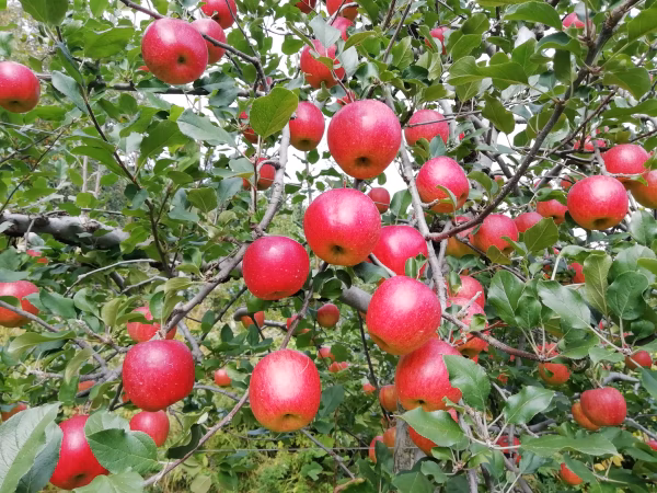 甘さ良し・歯触り良し・程よい酸味良し・・・、「三方良し」の期待のりんごで非常に根強いファンの押し林檎「陽光」です。 そう。かく言う坂爪農園の「押し林檎」でもあります。 更に、先ほどの三方に加えて陽光独特の「芳醇な香り」もたまりません。 「甘い」中に程よい酸味があります。従って「甘酸適和」なりんご。 「味」が良いため、各県の試験場でのリンゴの育種の際の「親品種」に選ばれることがあります。 「味」とは、甘さ・酸味・果汁・風味・硬さ等から総合的に判断されます。 群馬県で昭和30年代に育種された品種で昭和56年に品種登録されました。 甘酸適和・芳醇な香りの特性のため、根強い「陽光」ファンから令和の時代になっても、愛され続けているリンゴです。 また、まだお召し上がりいただいてない方にも、是非ご賞味いただき、陽光ならではの、甘酸適和のバランス・陽光ならではの芳醇な香りを堪能いただき、「令和の陽光ファン」を生産者としてお待ちしております。 信州北部では、シナノスイートと同時期に収穫いたします。甘さが欲しい方は、シナノスイートを!程よい酸味が欲しい方は、陽光をチョイスください。