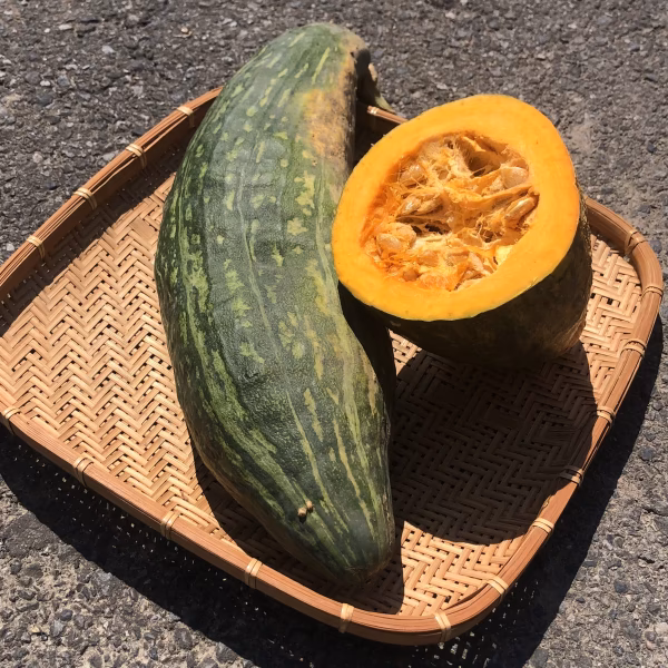 ▼商品概要 ・長さ40cm、重さ2~3kgになるビッグなカボチャで、果皮が薄く包丁が入りやすく、とても切りやすいです。 ・肉付きが均等なのでカット、スライスの歩留まりが高いです。 ・肉質は強粉質で、甘み強く食味良好。 ■栽培のこだわり 栽培期間中、農薬・化学肥料・除草剤は一切使用していません。 ▼数量、分量の目安 約1〜2.5kg(1個あたり)