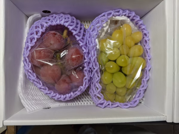 クイーンニーナとシャインマスカットの家庭用です。それぞれ約400gサイズですので、1箱800g程度になります。 小サイズですので価格はリーズナブルに設定しております。