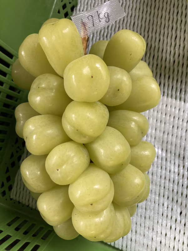 限定1房!早いもの勝ち! クール便です😄 伝票来ましたらすぐ発送出来ます❗️ 写真1枚目の房を送ります‼️ 今まで自分が作った雄宝で、1番デカい1.7キロ房です‼️自分でもビックリ‼️房型も完璧、粒肥大もめっちゃデカい、もうビッグビッグな房です‼️これは狙ってもなかなかできない房です。 ぜひ一度見て、実物を見て欲しいです!たまげます‼️ ▼商品概要 ウルトラビッグ大粒、新品種の雄宝1房1.7キロ以上です! 種無し皮ごと シャインマスカット×天山 シャインマスカットの子どもです。 ▼品種・味の特徴・食べ方 とっても皮が薄くて、巨大粒で、見るものを圧倒します笑 実物見るとびっくり👀するかもです。 皮が薄いのでとても食べやすくて、ジューシーで、果汁が溢れ出ます❗️どんどん手が伸びてあっという間に食べてしまうかも😫 一粒が25グラムから40gになる粒もあります。シャインマスカットが一粒平均15gなんで、大体1.5倍から2倍以上の粒ですよ。 なかなか市場には出回ってないので貴重な品種です。この機会にいかがでしょうか。 薄皮のため、かなりこまめに袋を開けて割れてないかチェックしないといけない大変手間がかかる品種です😭シャインより2倍手がかかります(๑>◡<๑) 1房1.7キロ以上の房で、粒が大きくて、房形がいいのを厳選して、お送りします。丁寧にラッピング致します。その圧倒的な風貌に驚くかもです。 シャインマスカットよりも手間暇がかかる気難しいぶどうですが、見た目もインパクトありますし、自分が大好きなぶどうなんで、ぜひ食べて欲しいぶどうです😆 皮が薄くて、甘すぎず、めっちゃジューシーで、かなり食べやすいぶどうです。 ご検討よろしくお願いします😄