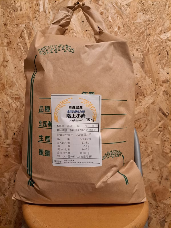 青森県階上産「ゆきちから」100%の小麦粉です。小麦の粒をまるごと挽いたのが全粒粉です。表皮まで砕いているので茶褐色で表皮と胚芽からくる香ばしい風味と歯ごたえある食感がポイントです。素材本来の味を味わうような素朴なお菓子やパンにいかがでしょうか。もちろんうどんやラーメンなどの麺にもお使いください。