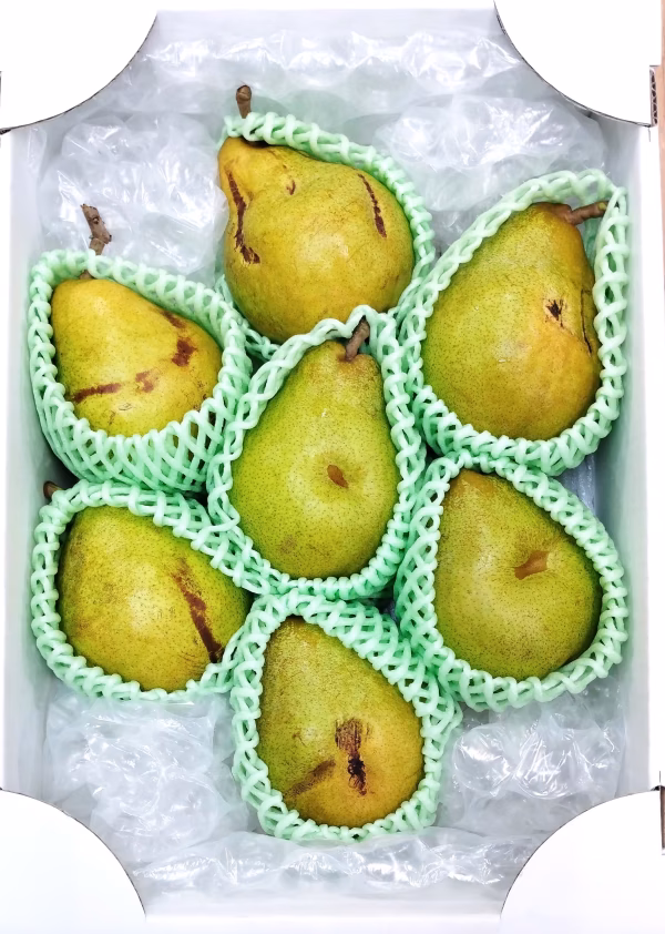 ドワイエンヌデュコミスは栽培方法の難しさから、生産量、流通量が非常に少なく希少な品種と言われております。ただし味は昭和天皇の料理人も「果物の王」と絶賛するほどの美味しさで、またその希少性から幻の洋梨と言われスーパー等ではなかなか出回りません。あったとしてもなかなか手が出せる価格ではないのですが、今回は傷ありの品を家庭用としてお求めやすい価格でご用意させていただきましたので、ぜひこの機会に希少な品種を味わっていただければと思います。