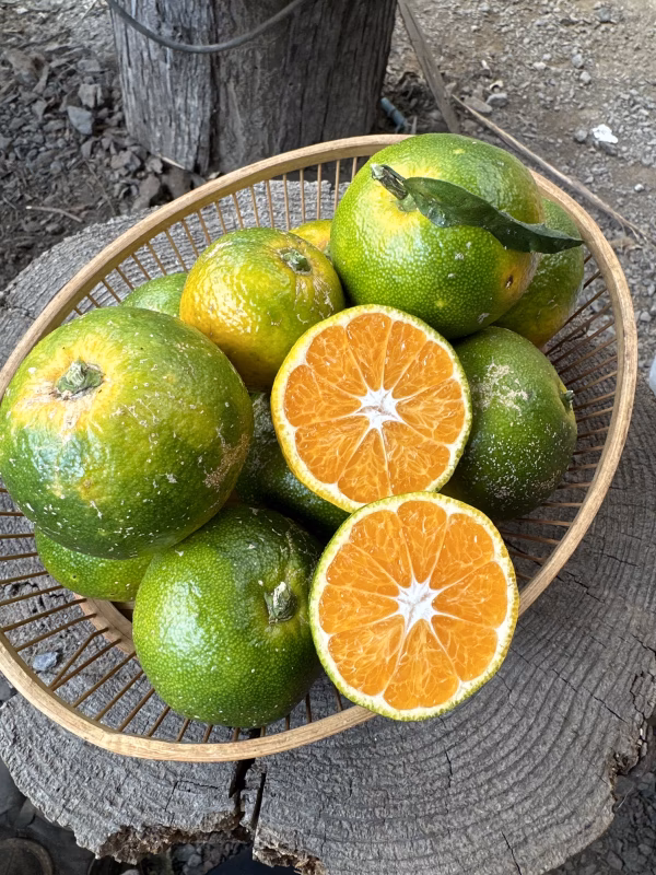 有機栽培で、農薬、化学肥料は一切使用していないため、皮の表面はきれいでなかったり、風によるスレがありますが中身には影響ありません。