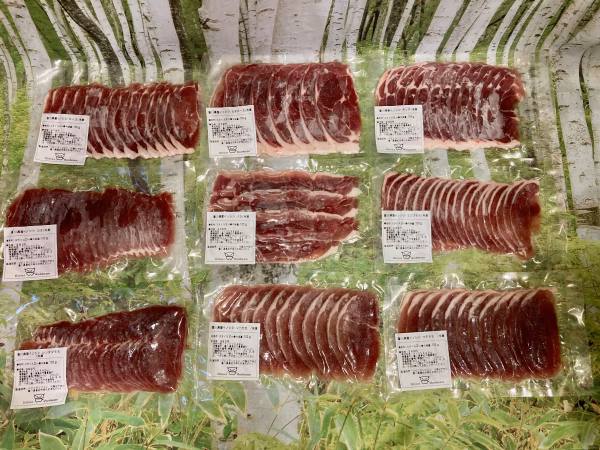 イノシシの部位9種、それぞれ特長のある味食感をお楽しみください。