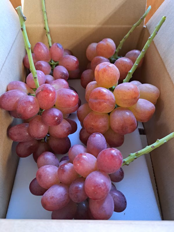 ▼自己紹介 こんにちは!長野県東御市滋野で三代続くぶどう農家です。 東御市滋野地区は南面傾斜と昼夜の寒暖差が大きいことから昭和より高品質なぶどうが栽培されてきました。 当園では長野県ぶどう三姉妹のシャインマスカット、ナガノパープル、クイーンルージュ®️や巨峰、クイーンニーナ、真沙果等を栽培しています。 こども達が食べて安心安全な栽培を心がけており、除草剤不使用、農薬だけに頼らない管理をしています。 ▼商品概要 2021年デビュー長野県限定生産『クイーンルージュ®️』と全国的にも希少な『真沙果』の詰め合わせです。贈答品と味に変わりはありませんが、家庭用のため、着色が淡かったり、不揃いのぶどうがございます。 ▼品種・味の特徴・食べ方 2品種ともに種無し皮ごと食べられます。クイーンルージュ®️は糖度が高くパリッとした食感と食べやすさが特徴です。一方、真沙果はあふれる果汁と濃厚な甘みを楽しめます。 ▼数量、分量の目安 1房300g~600g、1箱(4房~6房入り)約2キロ