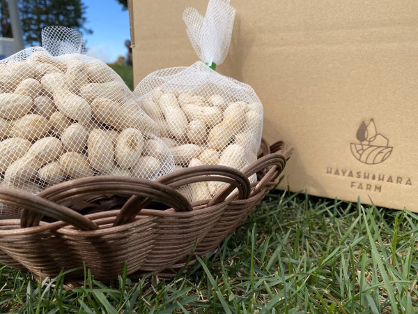 ご覧いただきありがとうございます。 林原農場の林原啓太です。 北海道十勝芽室産の茹で用生落花生(郷の香)の販売ページになります。 北海道十勝といえば小豆で有名ですが、同じ豆の中でも珍しい落花生を栽培しています。 北海道では気温が低く落花生の栽培は難しいとされていますが、マルチと不織布という保温資材を使い栽培することで積算温度を確保しています。 昼と夜の寒暖差が大きい土地で育った落花生は、糖分を蓄えて甘味が強くなり、ホクホクして変わったおいしさがあります!病みつきになるので、お酒のおつまみにも最適です! 水洗いし乾かした後、選別はしますが稀に未熟が入ってしまうことがありますので分量より多めに入れております。よく洗ってからお好みの塩加減(3%〜4%くらい)で茹でてお召し上がりください。 ご希望の重量からお選びください。