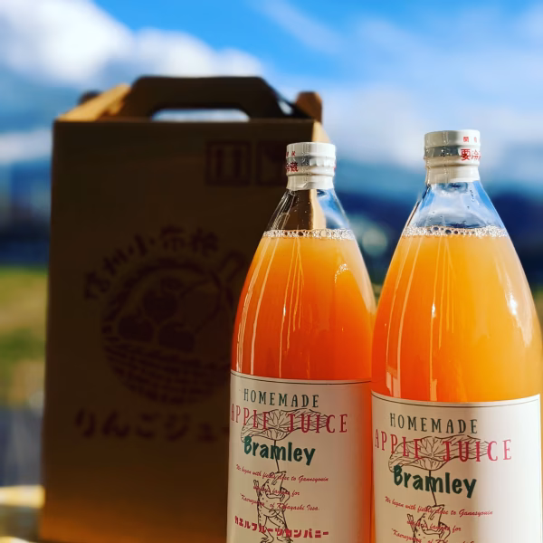 英国直伝、小布施のブラムリーを使用した、酸っぱい青りんごのジュースです。