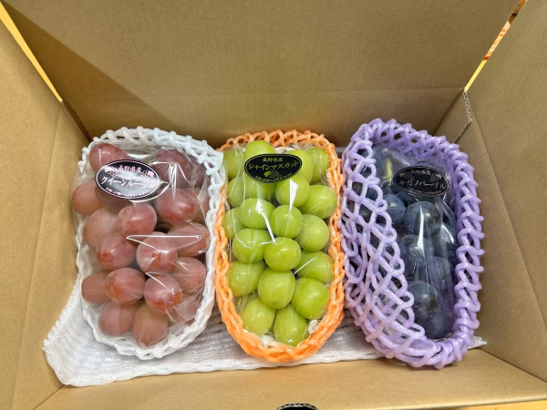 シャインマスカット、ナガノパープル、クイーンルージュの3房入りです!