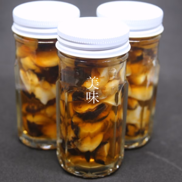 およそ21個分のサザエを瓶3本に詰めました。生のサザエを調理するのは大変という