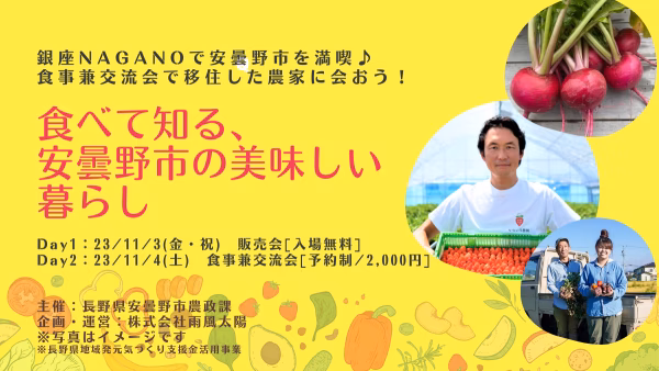 銀座にある長野県のアンテナショップ「銀座NAGANO」にて、安曇野市へ移住した2組の生産者さんと交流しながら、生産者さんの食材を使った料理を食べ、安曇野市について知ることができる貴重な機会です😋💕