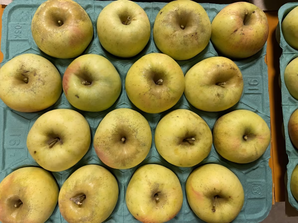 サクサクしていて、とてもジューシーで、甘味の中に酸味を感じることができる、さわやかな風味の黄色いりんごです。