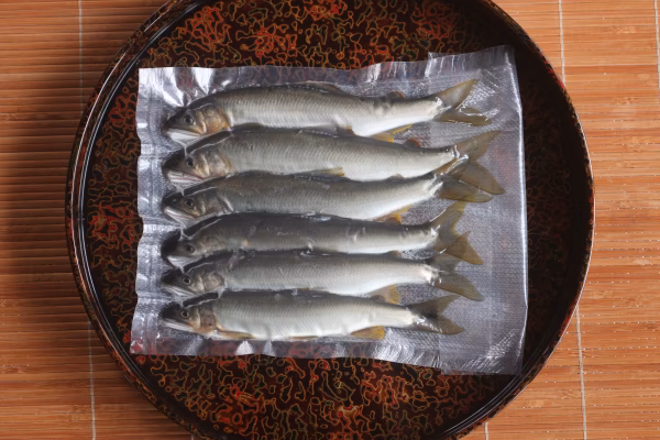体力が回復した元気な鮎の状態で氷締めし、真空冷凍しました。