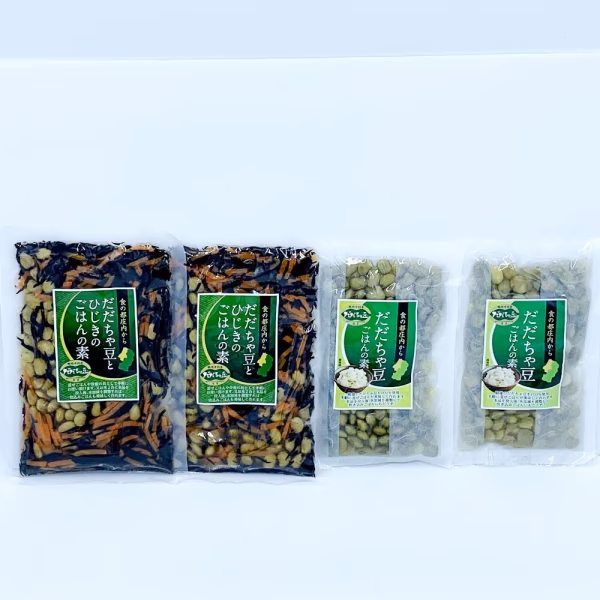 この商品はだだちゃ豆ご飯の素2袋と山形県特産のだだちゃ豆(枝豆)にひじきを加え2袋を混ぜご飯や炊き込みご飯用に味付しました、4袋セットです。簡単に調理できますので気軽にそしておいしく完成します。