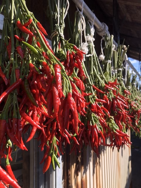 ▼商品概要 自家用に栽培しているトウガラシです。 辛さの中に旨みのあるトウガラシです。 枝ごと収穫し、乾燥途中の状態でお届けします。 我が家では、乾燥途中の枝付きの赤唐辛子を台所に吊るしておいて、少しずつ料理に使ってます🌶️ 枝付きなので、リースやスワッグの材料としても使えます。 ▼数量、分量の目安 大きさ 4〜7センチ程度 分量  約150本(実の本数)  ※乾燥の進み具合により、重さは変わります。  ※2枚目の写真がお届けする分量のイメージです。 ▼注文に際しての注意点(配送方法や納期指定など) ポケマル提携ヤマト便にてお届けします。 他の分量でのご注文をご希望の場合、お気軽にお問合せください。また、出品中の他の商品との同梱が可能な場合もあります。 ※未熟な青い唐辛子が含まれる場合があります。 ※トウガラシの表面が黒っぽくなっていることがありますが、生育途中で付着したもので、固く絞ったタオルなどで拭いたり、水洗いすることで落とすことができます。   #赤唐辛子 #とうがらし #なんばん #スパイスリース #スワッグ