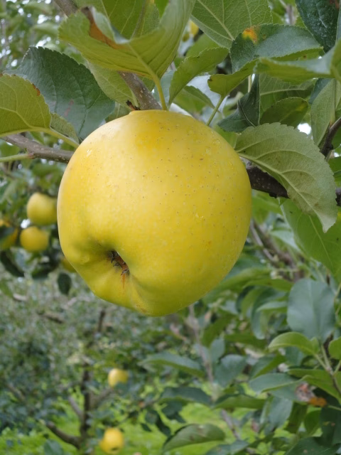 「シナノゴールド」の名前の通り黄色い林檎です。