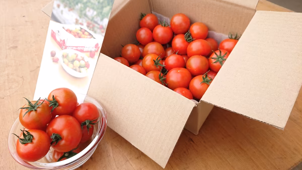 箱に書いてあるゼッピン娘につきましては、当社のトマトの商品名になります。今回は品種でのご提案をさせていただきます。