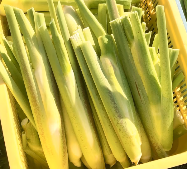 シャキシャキで、タケノコに似た食感です。油で炒めたり、天ぷらにしても美味しいですし、お味噌汁に入れても最高です。
