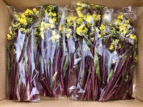 ご紹介する「紅菜苔」は晩冬から春にしか味わえない季節の滋味で、ほんのりとした苦味としっかりした甘味、そして歯触りが心地よい食感が持ち味です。サンドファームの紅菜苔は無農薬砂栽培により更にスッキリと雑味無く仕上がっています。菜の花と同じ要領で和洋中と幅広く調理して頂けますが、菜の花よりも旨味が強く、クセになる美味しさです。^*