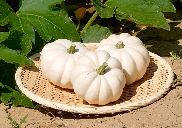プチホワイトは美しい白い見た目で、とても目を引く手のひらサイズの可愛らしいカボチャです。