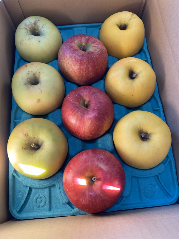 ▼商品概要・・・箱の中に3種類のりんごを詰めました。それぞれのりんごの味わいや食感を楽しむことができます。