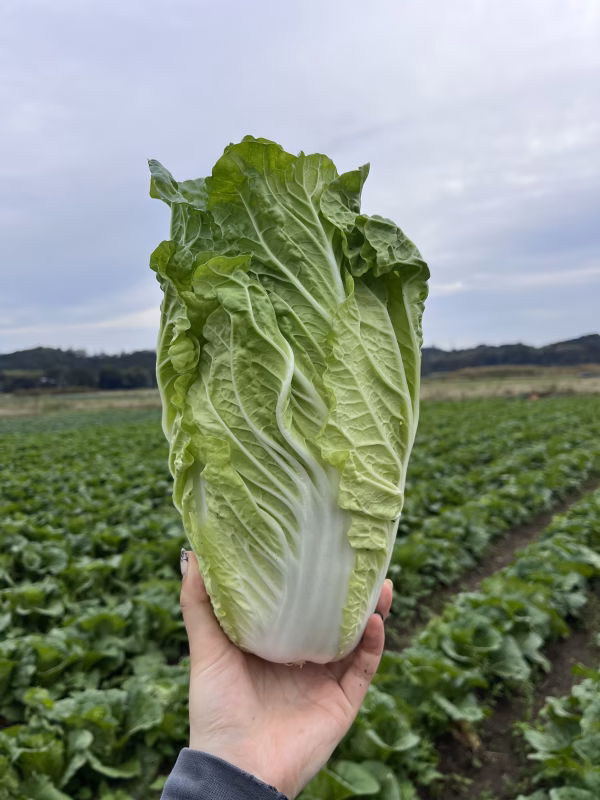 ▼商品概要 タイニーシュシュと言う品種で小ぶりのサラダ白菜です。 ▼品種・味の特徴 通常の白菜との違いは、トゲが無く、シャキッと舌触りなめらかなのが特徴です。 味にクセがなく、甘い。生のままでも、火を通しても美味しくお召し上がりいただけます! ▼数量、分量の目安 一つの重さは約1kg~1.5kgです。 ▼栽培/生産方法、こだわり 栽培期間中農薬不使用 ▼注文に際しての注意点(配送方法や納期指定など) 1つひとつ確認はしていますが、見えないところに虫が潜んでいる可能性があります。ご理解いただけますと幸いです。