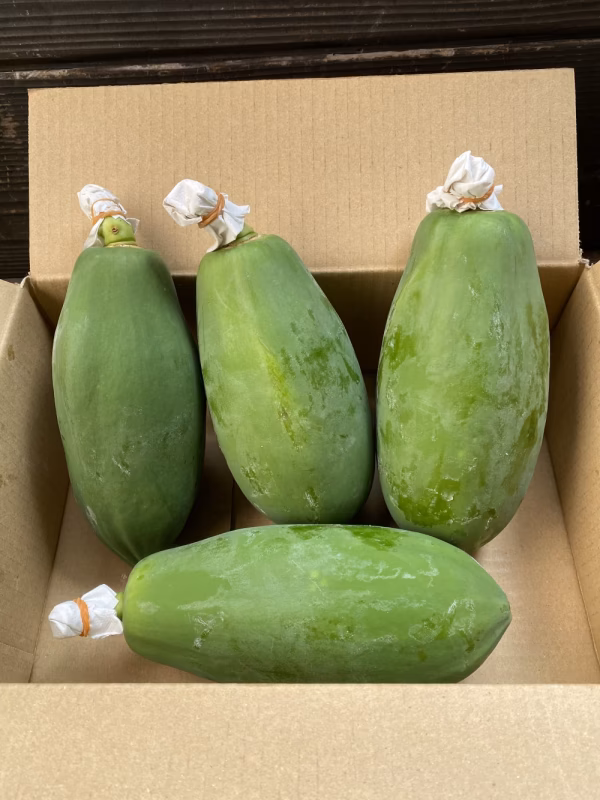 ▼商品概要 ヤマト宅急便60サイズに箱重量込み2kgまで入ります。 青パパイアは栽培中は農薬不使用。 化学肥料も使用しておりません。 #青パパイヤ #青パパイア #アスパラガス ほんのりパパイア味がしますが、 まずは天ぷらでお試しあれ。 冬瓜のように煮てもよし! 焼いてもよし! 千切りにしてサラダもよし! 色んな調理をお試しくださいませ。 ▼数量、分量の目安 青パパイア2kg以内 ▼注文に際しての注意点(配送方法や納期指定など) 日にち指定不可ですが時間指定は可能です。