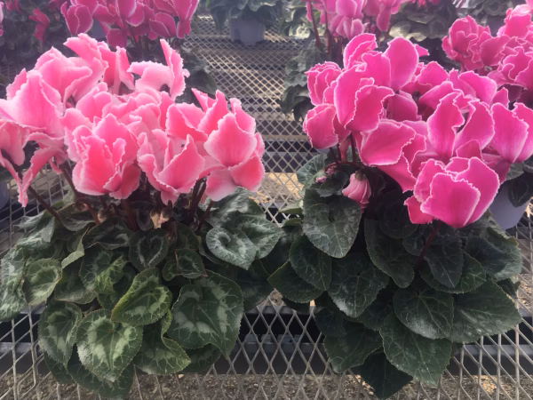 シクラメン (フリルピンクorフリル紫)5号鉢(直径15㎝)底面給水鉢 画像はイメージです。