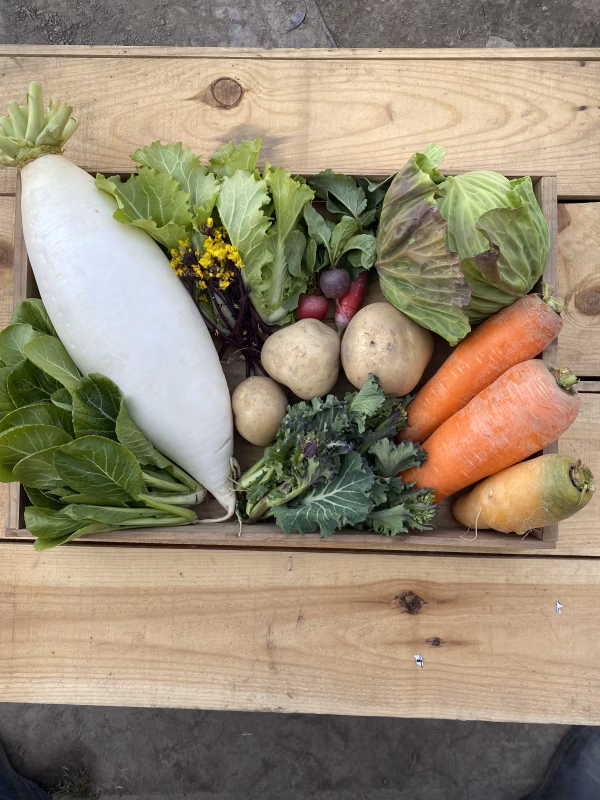 露地で育ったお野菜は、その季節を元気に過ごす知恵を備えていますので、美味しく栄養満点です!化学農薬、化学肥料、除草剤には頼らず、自家製のぼかし肥料を使用して自然に近い状態でお野菜を育てています。授乳中、離乳食などでも安心して食べていただけたら嬉しいです。