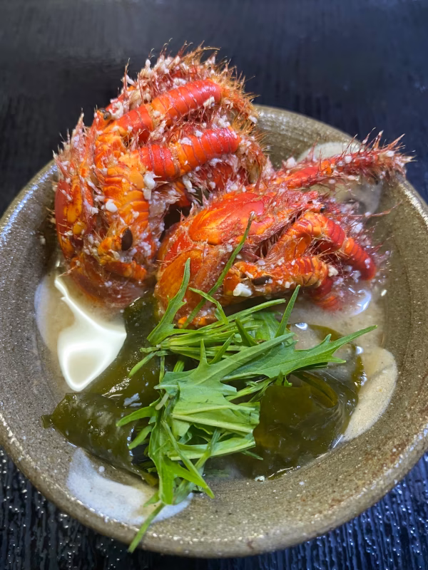 伊勢海老漁は前日の夕方に海に出て海中の根にそって網をかけます、次の朝早くにその網を回収に行きます、網に付いた伊勢海老やカニを1匹ずつ丁寧に外します、伊勢海老漁の際に網にかかる鬼ヤドカリを殻から出してその日の内に−60度で急速冷凍しています、海老網漁師直送の新鮮冷凍ヤドです。