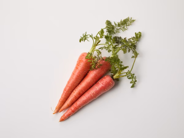 京くれないは金時ニンジンと五寸ニンジンのハイブリッド!今までのニンジンにはない肌の照りとツヤ、美しく鮮やかな根色が特長です。リコピンを含み、ニンジン臭も少なく甘みに富んでいます。