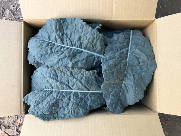 鹿児島産の黒キャベツ注文を受けてから、収穫日に収穫した箱込み1.2キロ前後を畑の空気も収穫しながらAB品大中小混合箱詰めして、当日発送します^_^