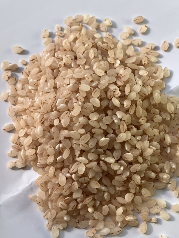 昔から引き継がれた自家採取の種籾で育苗から収穫、天日干しの後籾摺りから八分づきに。