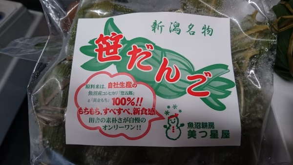 魚沼コシヒカリ惣五郎とこがねもちを使ってこだわりの笹だんご作りました。その食感と風味は他の笹団子とは一味違います。