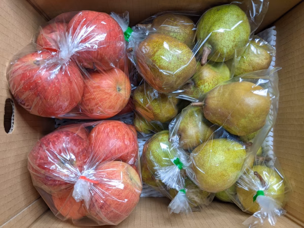 ふじりんご小サイズ3.2kg、ラ・フランス小サイズ4.6kgの詰め合わせです。