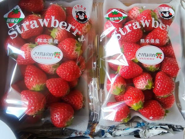 さがほのか❤️いちごです。サイズはSサイズ1粒7g~10gです。1パックに325g入れて2パック入りです(^-^)いちごみるく、ジュース、スムージー、ジャムに最適!もちろん❣️そのままパクパクもOKです(^-^)