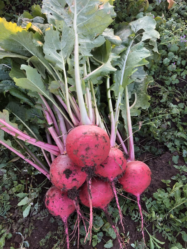 赤色のカブの「もものすけ」まさに、見た目が桃のようです。