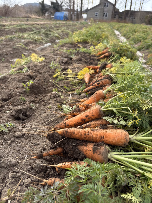 動物性堆肥の中で最も育土効果の高い「馬ふん堆肥」を使用しています。土壌微生物の多様性に重きを置き、人参達がすくすく気持ち良く育つ環境作りを心がけています。