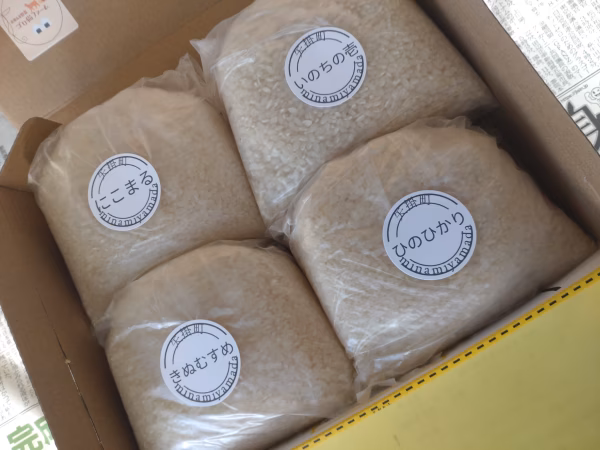 令和5年岡山県産 、きぬむすめ、にこまる、ひのひかり、ハクトモチのもち米、以上4銘柄の詰め合わせです。精米しております。