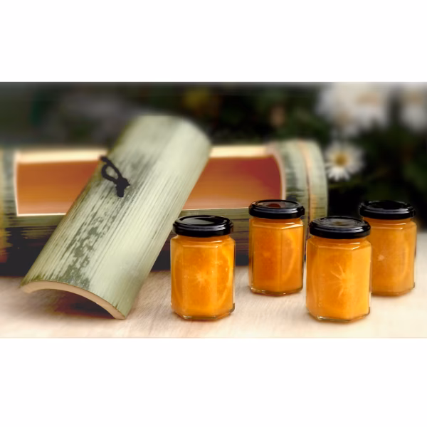 ジャムは、竹飯盒を入れ物に入れてお送りします。