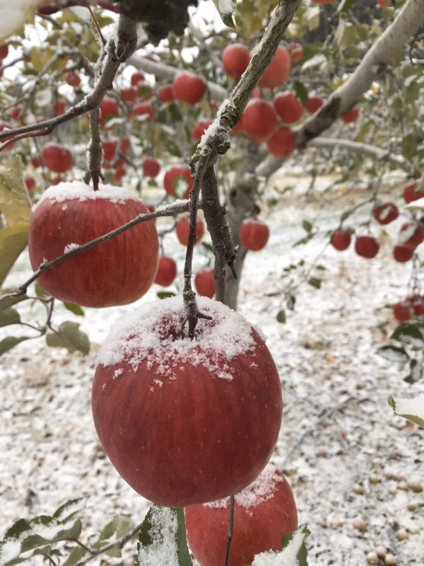 雪の降る冬にりんごの枝の剪定から始まり、春に花が咲くころには交配、花が咲き揃ってからは摘花、実ができ始めたころには摘果、りんごが色づく秋には葉摘み、玉まわしなどの作業を行います
