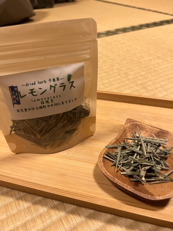 レモンのようなすっきりした香りで、気持ちをリラックスさせてくれるレモングラスというハーブを乾燥させたものです。