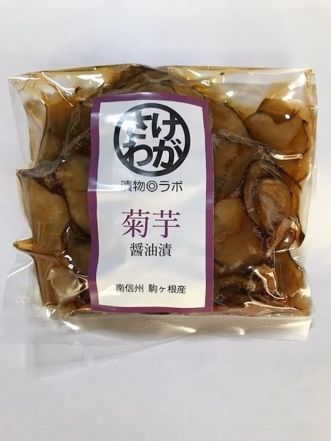 標高約650mの畑で栽培した菊芋をスライスし醤油で漬け真空パックし、熱殺菌してあります。