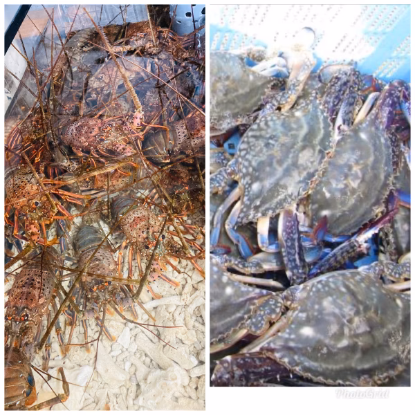 九十九里産の活ワタリガニと伊勢海老のセットです。