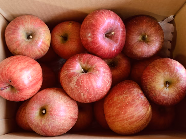 サンふじと呼ばれるりんごは、もともと無袋で栽培を始めた山形県が発祥の地であり、太陽の光(サン)を充分に浴びたふじりんごは甘く蜜が入ります。