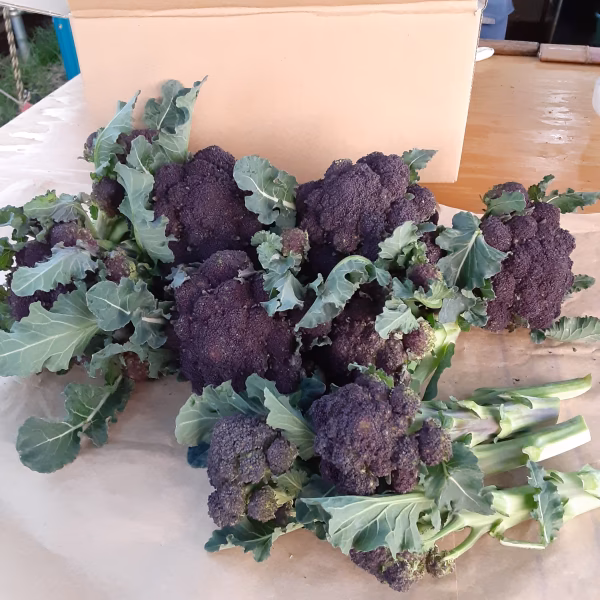 紫セニョーラ:アスパラガスに似た甘味のあるスティックブロッコリーで茎はクセがなく、甘くコリっとした歯触りです。