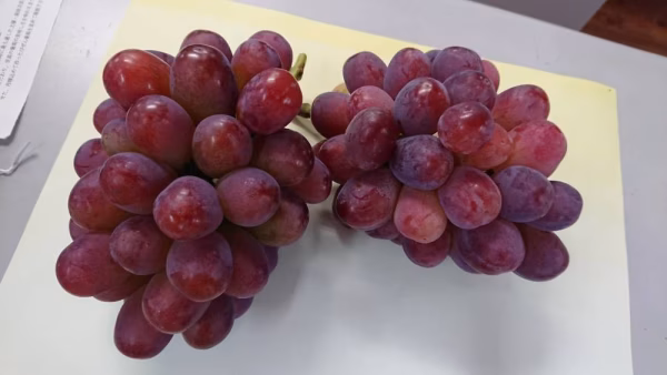 透き通ったワインレッドの果粒は、大粒で爽やかな甘さで すっきりジューシー♪♪