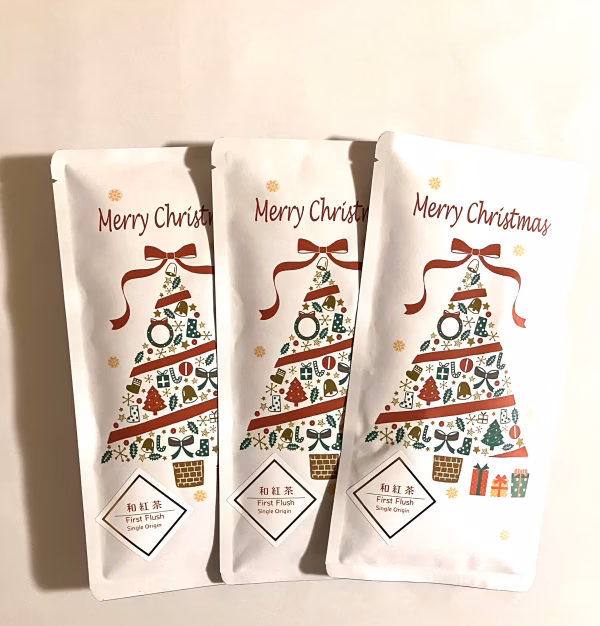 ▼茶園アウラの和紅茶(クリスマスデザイン)は