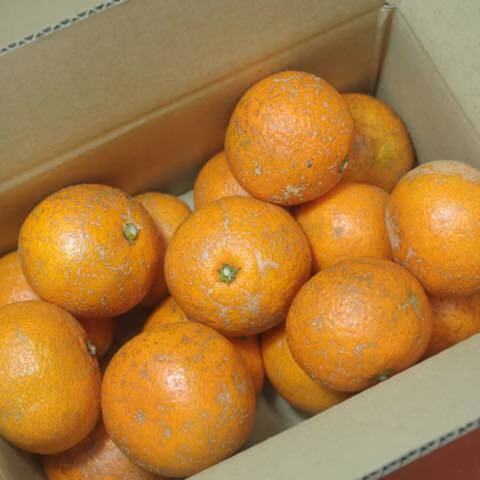 果皮が萎れています。スス(煤煙ではありアセン)の付着したのもあります。