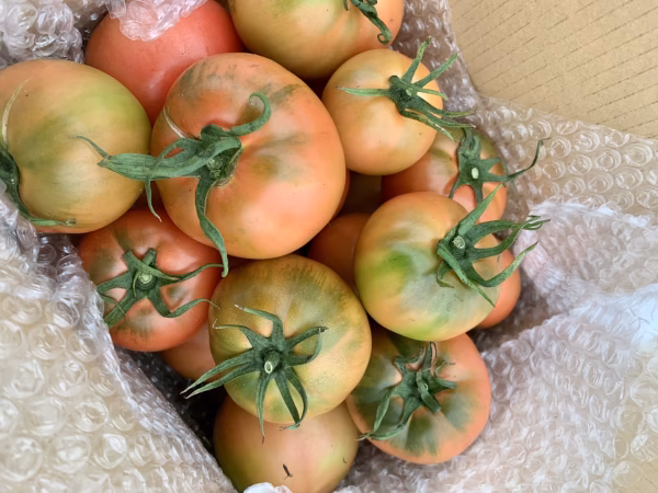 冷蔵庫保管してください。青めのトマトは常温で追熟してください。