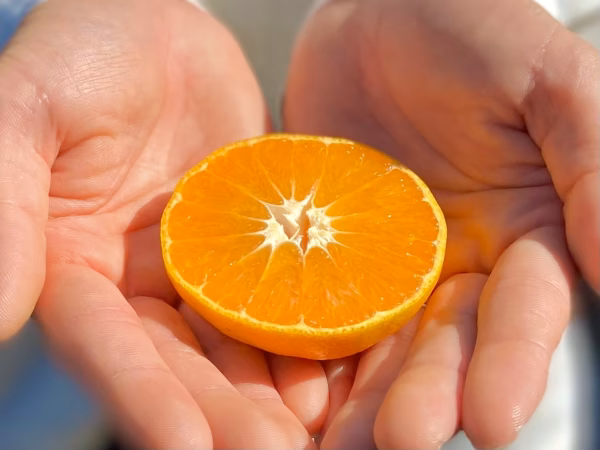 「西南のひかり」は品種登録されたばかりで、まだ一般的には出回り量の少ない希少なみかん。肉質は軟らかくジューシーで、糖度が高いのが特徴。果肉は果汁を豊富に含み、ソフトな口当たりで、甘味と酸味のバランスがよいのが特徴。「アンコール×興津早生 No.21」と「陽香(清見×中野3号ポンカン)」生産量が少なく、数に限りがありますのでご了承ください。